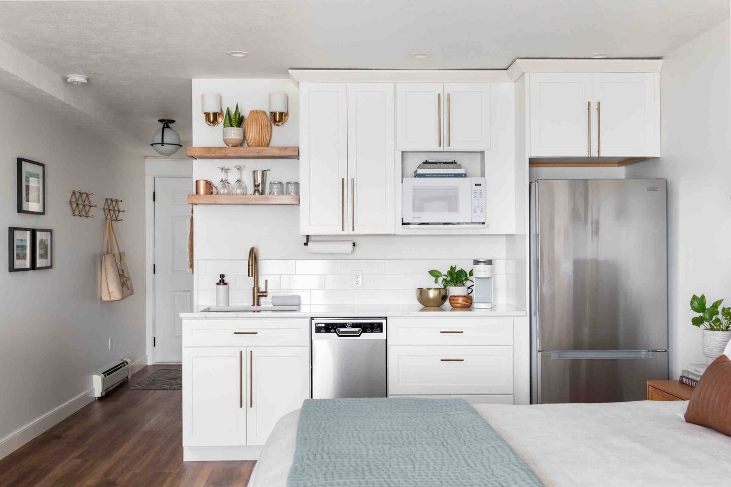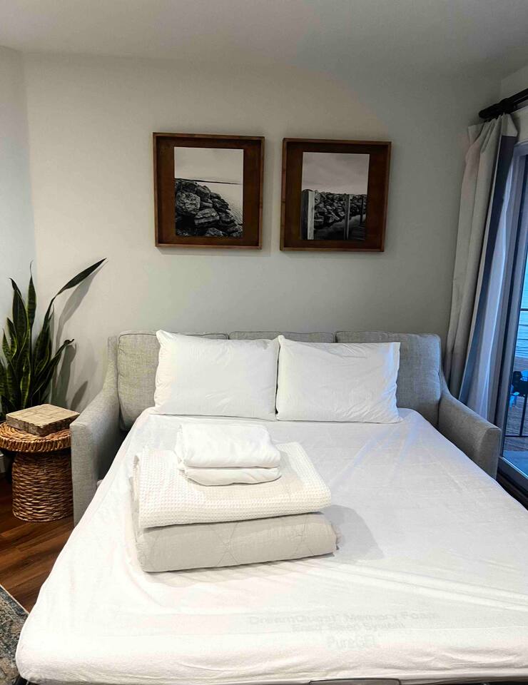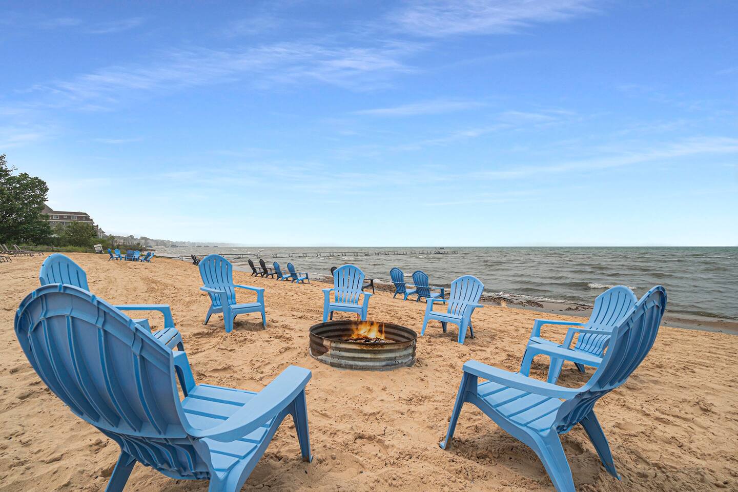 This Easy Bay studio condo was completely renovated in 2023 with guests in mind. The complex offers a heated pool for your use in the summer months. It also gives you access to the large beach that is maintained daily. Beach chairs and sand toys provided. Make a bonfire in one of the fire pits and make some s'mores! The kitchenette offers a large fridge, dishwasher, full sink, electric hot plate for cooking, and is fully stocked for your use. We supply a full coffee bar with coffee, cream, and sugar. Relax in the king size bed while picking out your favorite show on the Frame TV. Cable is provided and you have access to log into any of your favorite streaming services. The large bathroom offers a walk in tile shower and large vanity. Shampoo, conditioner, bar soaps, q-tips, cotton balls, and even hair ties are supplied. Have more than two people? Open up the new pull out queen size couch. All bedding and pillows are provided as well. Spend free time hanging out on the patio. Perfect for morning coffee or watching the sunset. This condo is located on the second floor. There is an elevator for your use.