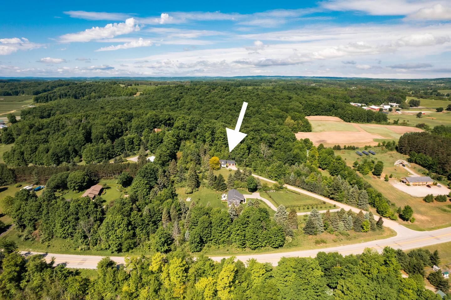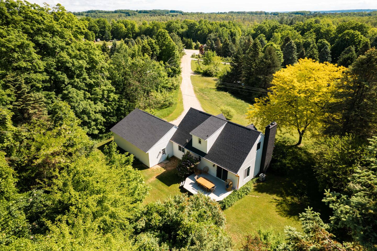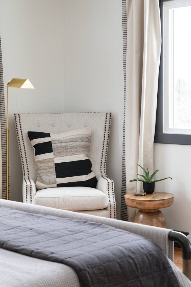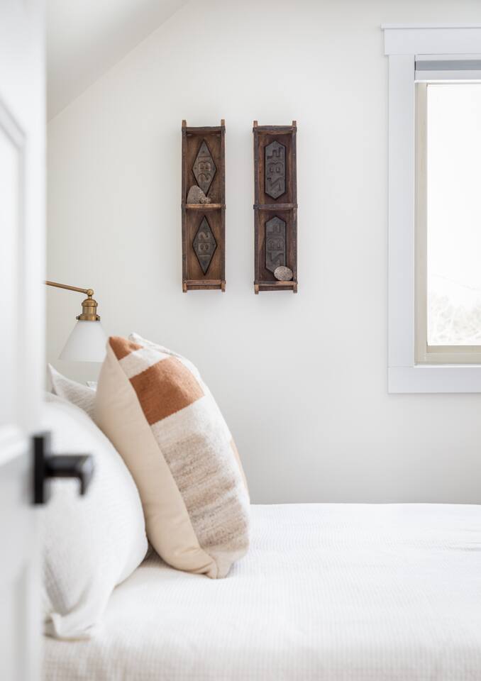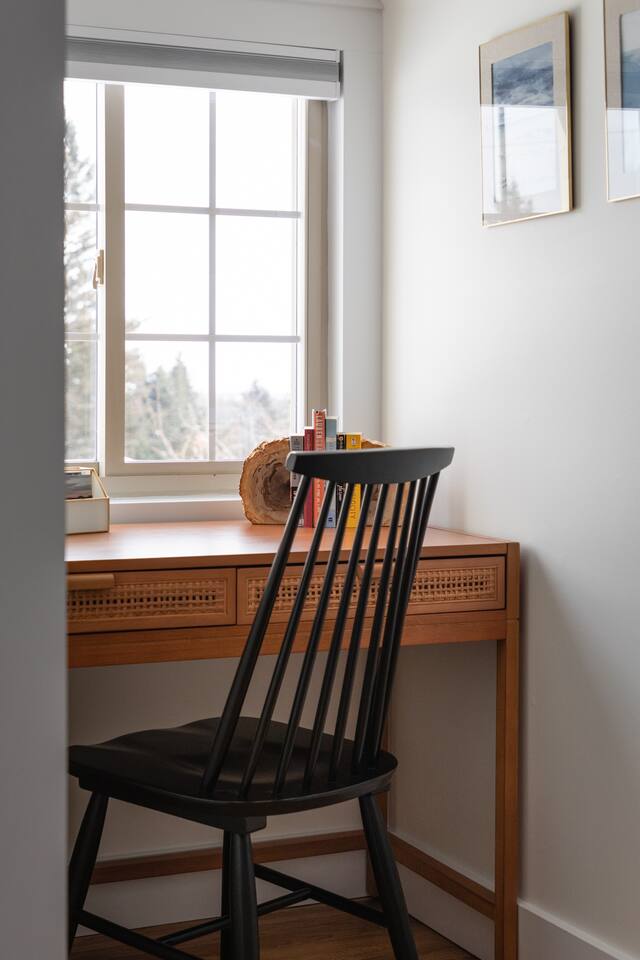 The Norra House was created with comfort and design in mind. The family room has a large couch and 4 additional accent chairs for lounging. The frame TV adds artwork to the room while not in use but turns into a smart TV to stream live television and any app you need. Cupboards are stocked with games for all ages. There is also a large dinning table that easily seats 8. In this room you will find a bar cart, record player and vinyls for your use. The kitchen is completely stocked with every kitchen item you could need to make a 5 course meal. Also on the main level is a large bedroom with king size bed with memory foam mattress. Directly across the hall is a brand new bathroom with tub and shower. The garage is over sized and can fit two large vehicles. There is a mudroom for use along with a new laundry room with large capacity washer and dryer. Upstairs you will find an additional full bath and two large bedrooms. One with a king bed and desk area. The other with a queen and twin bed. This room has a built in playhouse for the kiddos, stocked with toys. There is also a reading bench with tons of books at all reading levels. The home sits on 5 acres at the top of a small hill. A back deck with dinning table set up in the summer. There is a fire pit and park grilling and s'mores. Explore the land behind the home during your stay. The home has easy access to iconic M22 for quick access to Sutton’s Bay, Traverse City, wineries, Sleeping Bear Dunes and so much more!