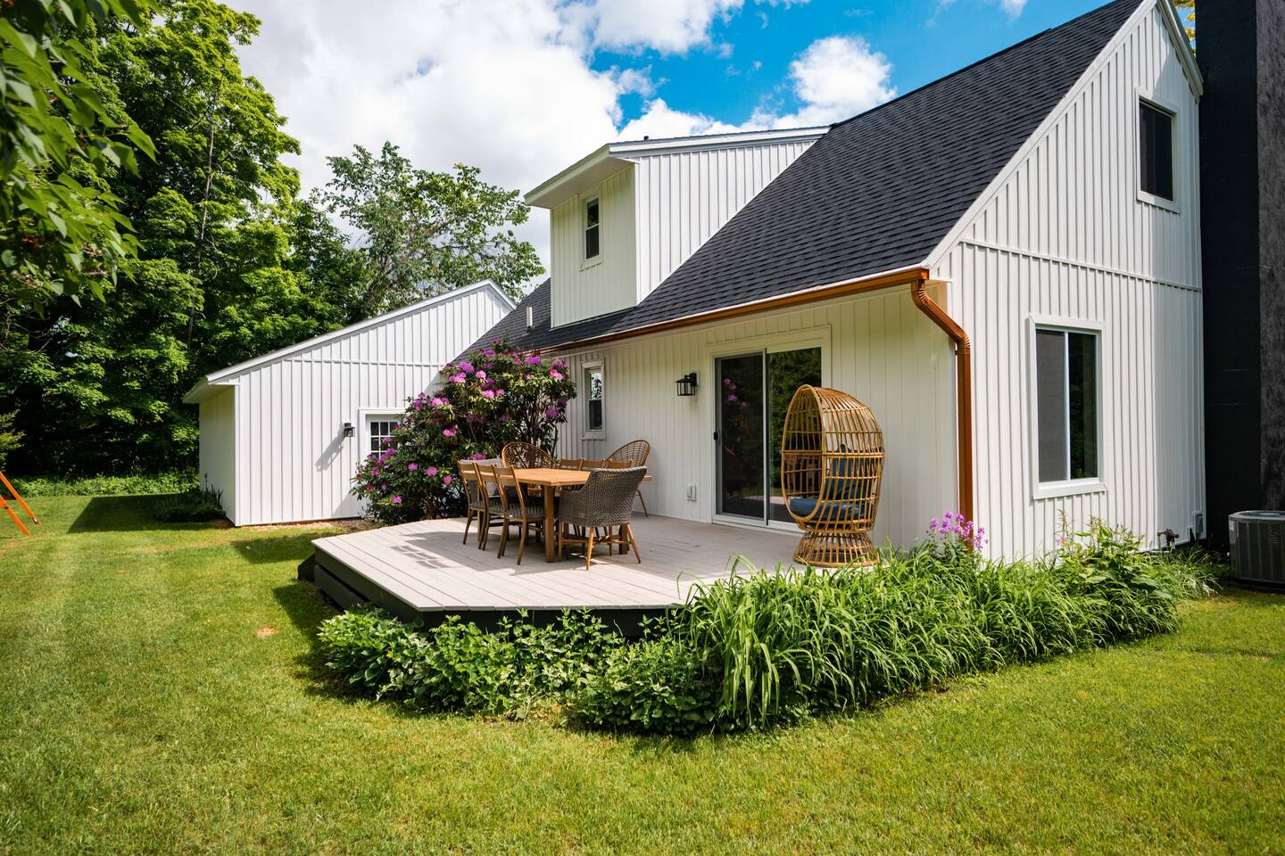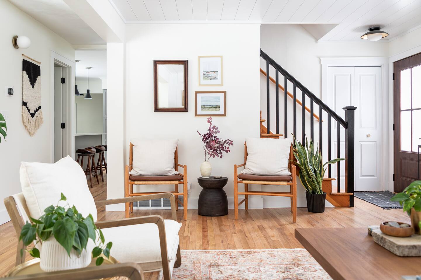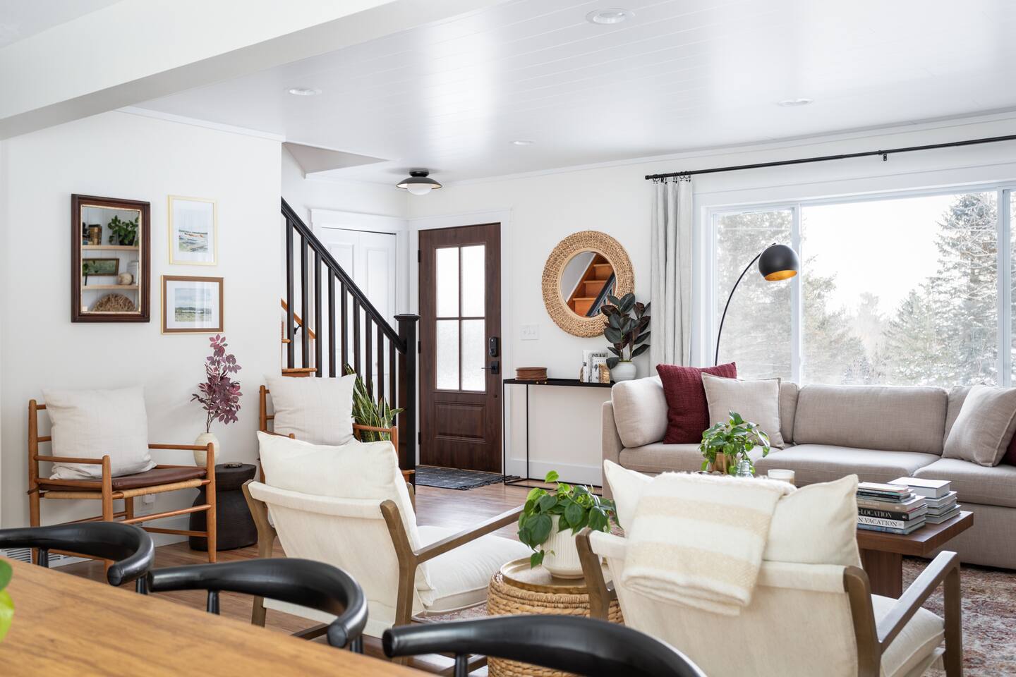 The Norra House was created with comfort and design in mind. The family room has a large couch and 4 additional accent chairs for lounging. The frame TV adds artwork to the room while not in use but turns into a smart TV to stream live television and any app you need. Cupboards are stocked with games for all ages. There is also a large dinning table that easily seats 8. In this room you will find a bar cart, record player and vinyls for your use. The kitchen is completely stocked with every kitchen item you could need to make a 5 course meal. Also on the main level is a large bedroom with king size bed with memory foam mattress. Directly across the hall is a brand new bathroom with tub and shower. The garage is over sized and can fit two large vehicles. There is a mudroom for use along with a new laundry room with large capacity washer and dryer. Upstairs you will find an additional full bath and two large bedrooms. One with a king bed and desk area. The other with a queen and twin bed. This room has a built in playhouse for the kiddos, stocked with toys. There is also a reading bench with tons of books at all reading levels. The home sits on 5 acres at the top of a small hill. A back deck with dinning table set up in the summer. There is a fire pit and park grilling and s'mores. Explore the land behind the home during your stay. The home has easy access to iconic M22 for quick access to Sutton’s Bay, Traverse City, wineries, Sleeping Bear Dunes and so much more!