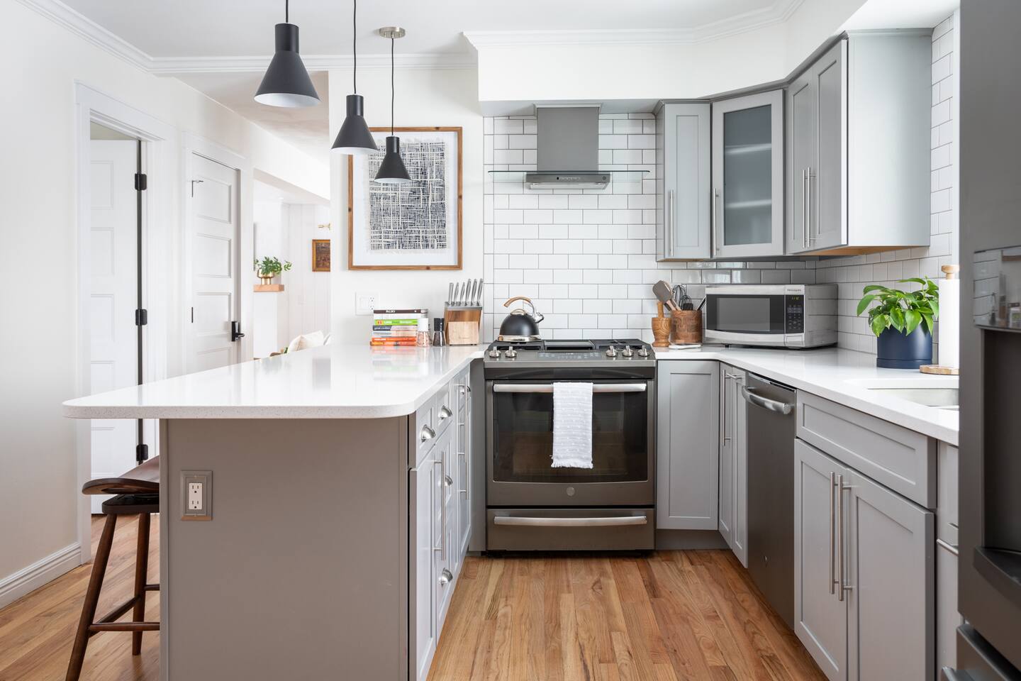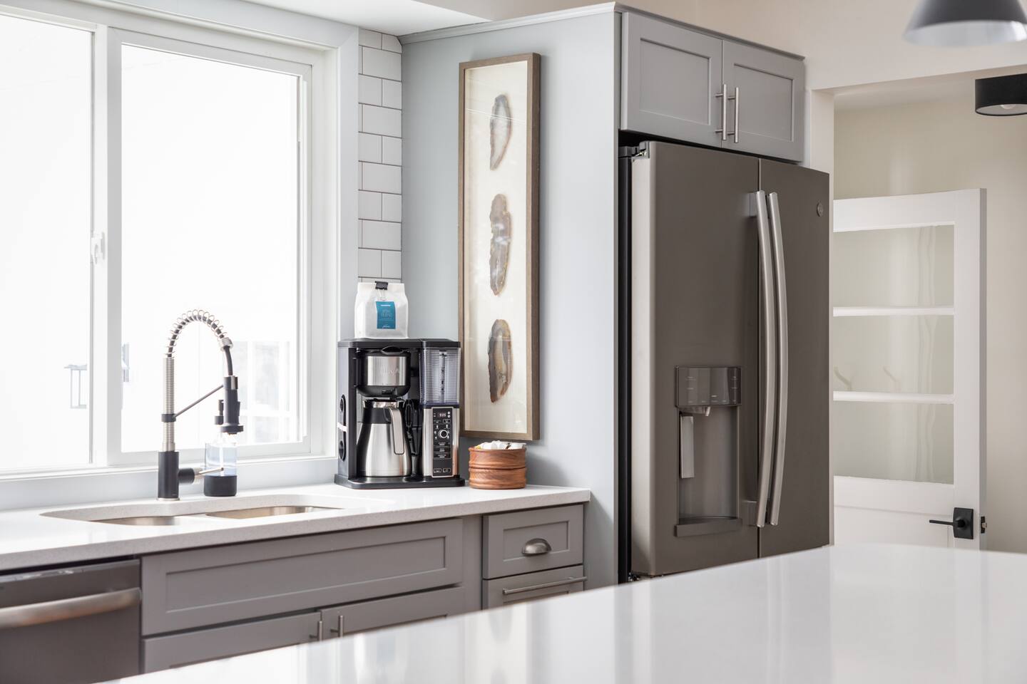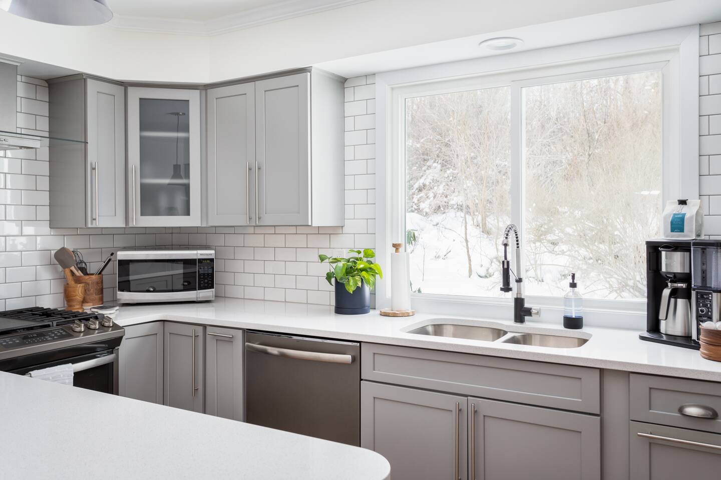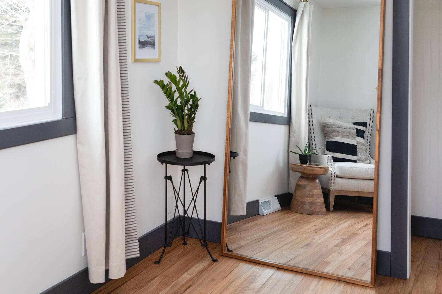 The Norra House was created with comfort and design in mind. The family room has a large couch and 4 additional accent chairs for lounging. The frame TV adds artwork to the room while not in use but turns into a smart TV to stream live television and any app you need. Cupboards are stocked with games for all ages. There is also a large dinning table that easily seats 8. In this room you will find a bar cart, record player and vinyls for your use. The kitchen is completely stocked with every kitchen item you could need to make a 5 course meal. Also on the main level is a large bedroom with king size bed with memory foam mattress. Directly across the hall is a brand new bathroom with tub and shower. The garage is over sized and can fit two large vehicles. There is a mudroom for use along with a new laundry room with large capacity washer and dryer. Upstairs you will find an additional full bath and two large bedrooms. One with a king bed and desk area. The other with a queen and twin bed. This room has a built in playhouse for the kiddos, stocked with toys. There is also a reading bench with tons of books at all reading levels. The home sits on 5 acres at the top of a small hill. A back deck with dinning table set up in the summer. There is a fire pit and park grilling and s'mores. Explore the land behind the home during your stay. The home has easy access to iconic M22 for quick access to Sutton’s Bay, Traverse City, wineries, Sleeping Bear Dunes and so much more!