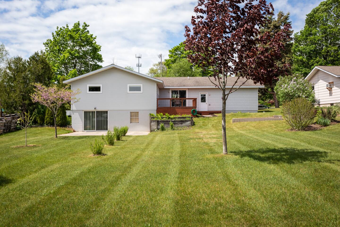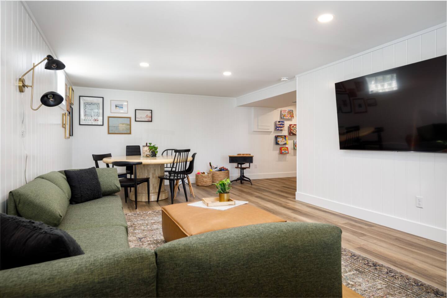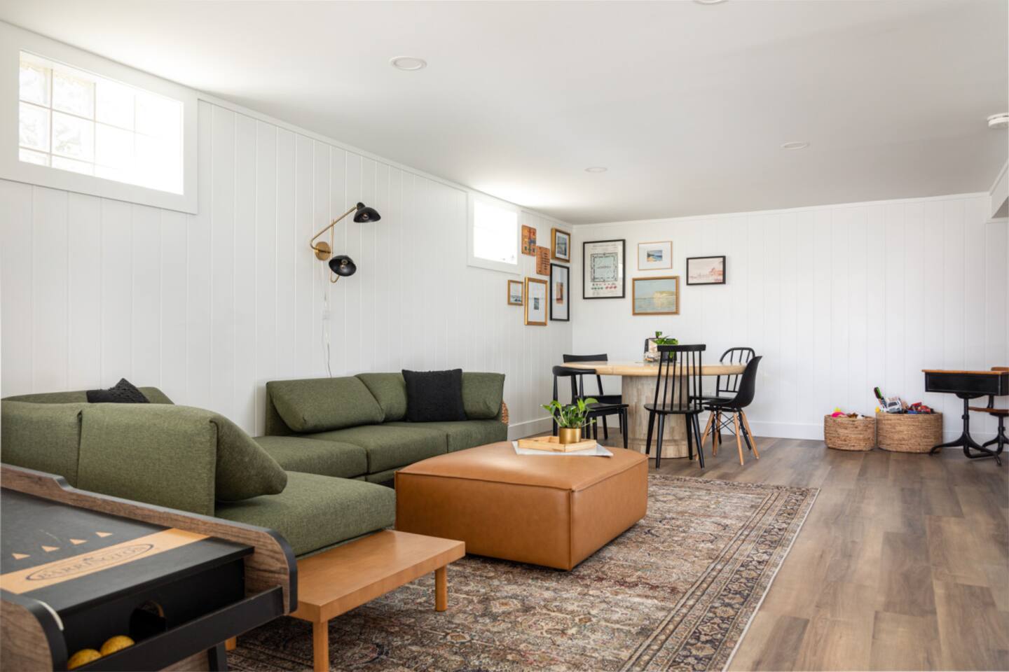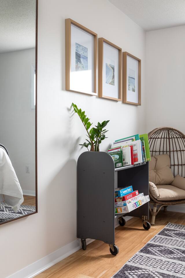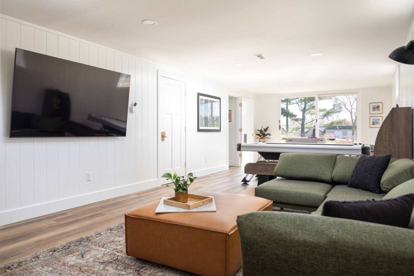 Start the morning at the provided coffee bar with coffee, cream, sugar, and teas. Make a 5 course meal in the fully stocked kitchen and gather around the large dinning table to enjoy each other. Want to eat out instead? Just walk the few blocks into town where you can pick from the numerous restaurants! From the local drinking hole to Wren with their 5 course meals, there is an option for everyone. Hang out in the family room with the smart TV or listen to one of the vinyls on record player. The basement offers a large game room and additional 65inch television with lounge area. Foosball, air hockey, and many other games for hours of entertainment! Walk right to the beach, also just a few blocks away. Refresh in one of the three bedrooms all with new memory foam mattresses. Bringing kiddos? Pack light! Pack and play, high chair, noise machine, toys and books are all provided! The TART Trail is just a block away! Rent bikes and have them waiting for you at the house or bring your own and leave in the over sized garage. Whatever your plan might be, the Elm House is fully stocked for time in or centrally located for ALL of Leelanau's adventures.