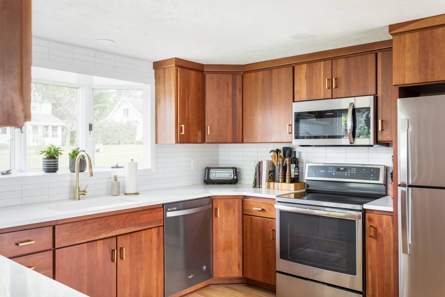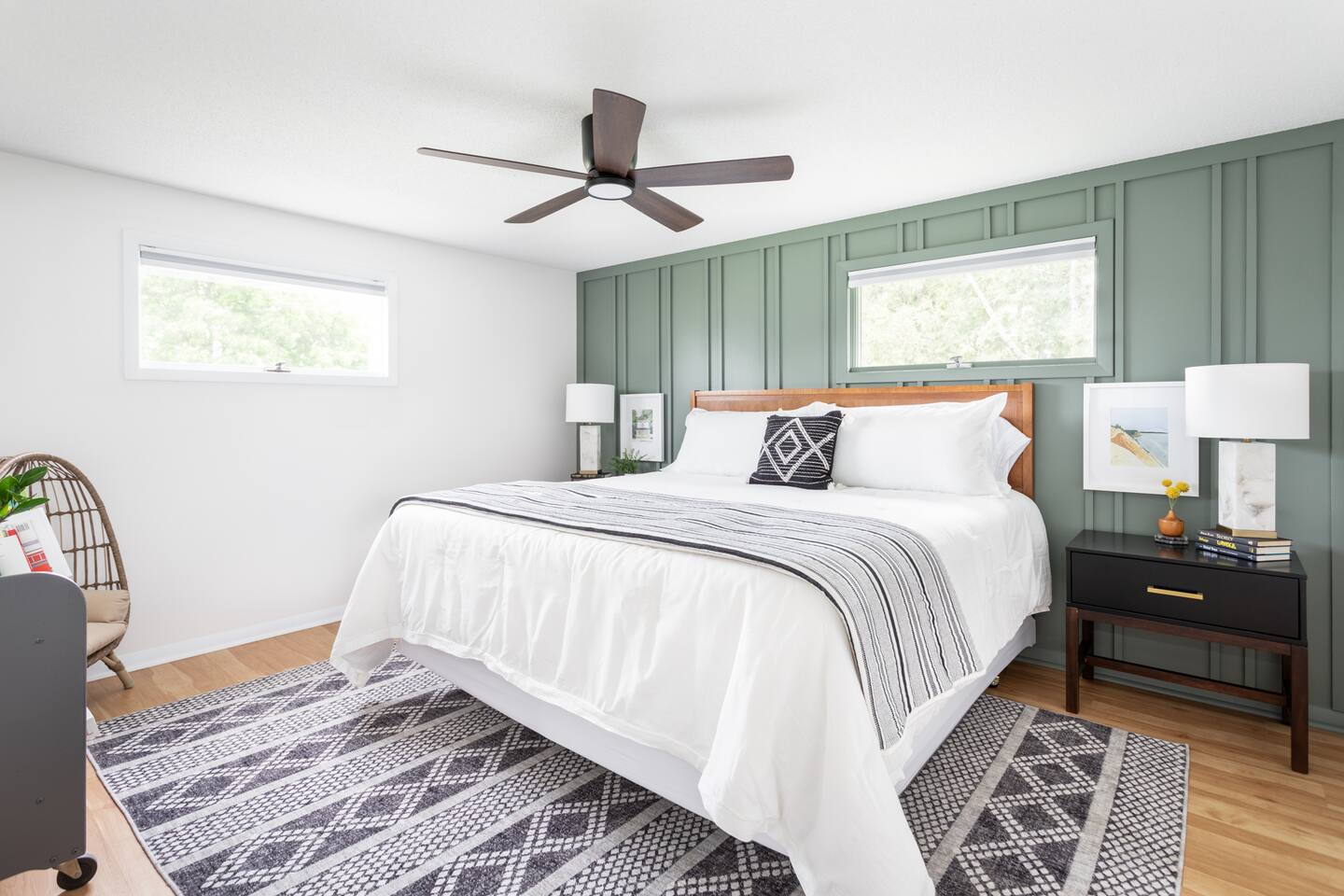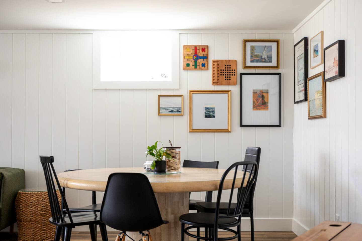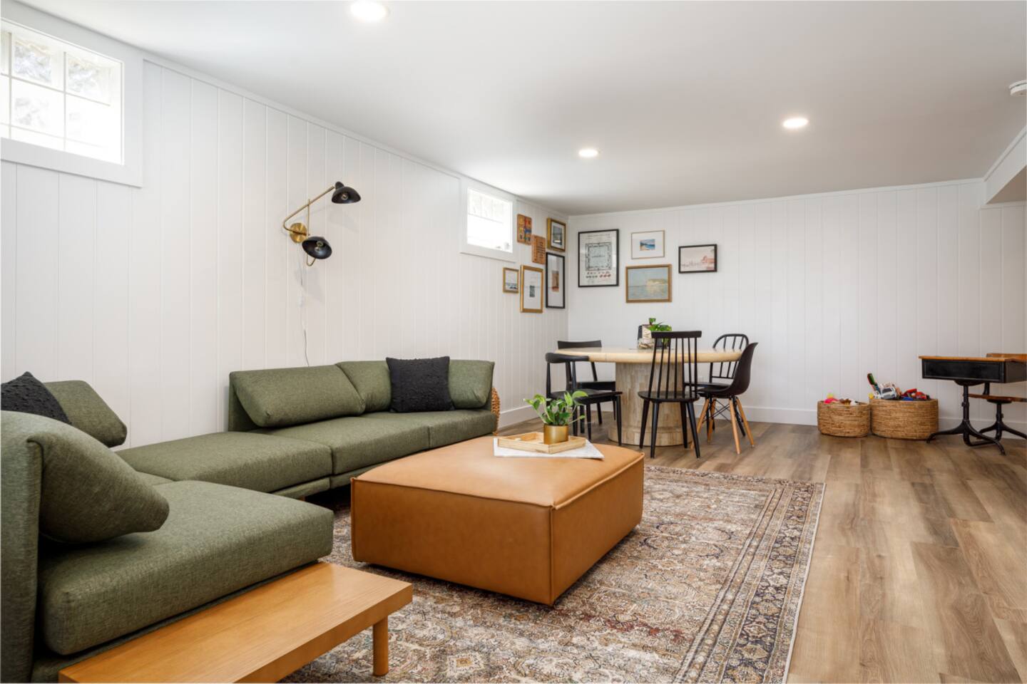 Start the morning at the provided coffee bar with coffee, cream, sugar, and teas. Make a 5 course meal in the fully stocked kitchen and gather around the large dinning table to enjoy each other. Want to eat out instead? Just walk the few blocks into town where you can pick from the numerous restaurants! From the local drinking hole to Wren with their 5 course meals, there is an option for everyone. Hang out in the family room with the smart TV or listen to one of the vinyls on record player. The basement offers a large game room and additional 65inch television with lounge area. Foosball, air hockey, and many other games for hours of entertainment! Walk right to the beach, also just a few blocks away. Refresh in one of the three bedrooms all with new memory foam mattresses. Bringing kiddos? Pack light! Pack and play, high chair, noise machine, toys and books are all provided! The TART Trail is just a block away! Rent bikes and have them waiting for you at the house or bring your own and leave in the over sized garage. Whatever your plan might be, the Elm House is fully stocked for time in or centrally located for ALL of Leelanau's adventures.